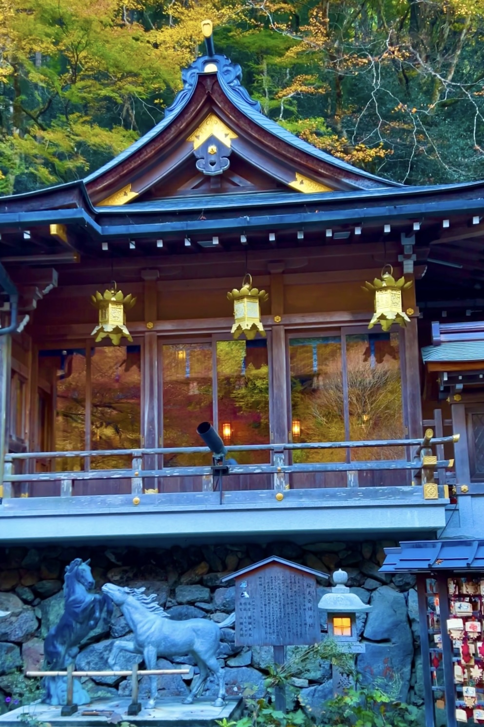 在本宮,別忘了抬頭看看那兩匹神馬雕像,一黑一白。古代祈雨時獻上黑馬,祈晴時獻上白馬,這便是今日神社中「繪馬」的起源。站在這裡,你可以想像千百年前,皇家使者帶著憂心忡忡的祈求,來到這深山之中,將國家的命運寄託於水神的喜怒。時間的長河,似乎也如腳下的貴船川一般,在此地流淌得特別清晰。