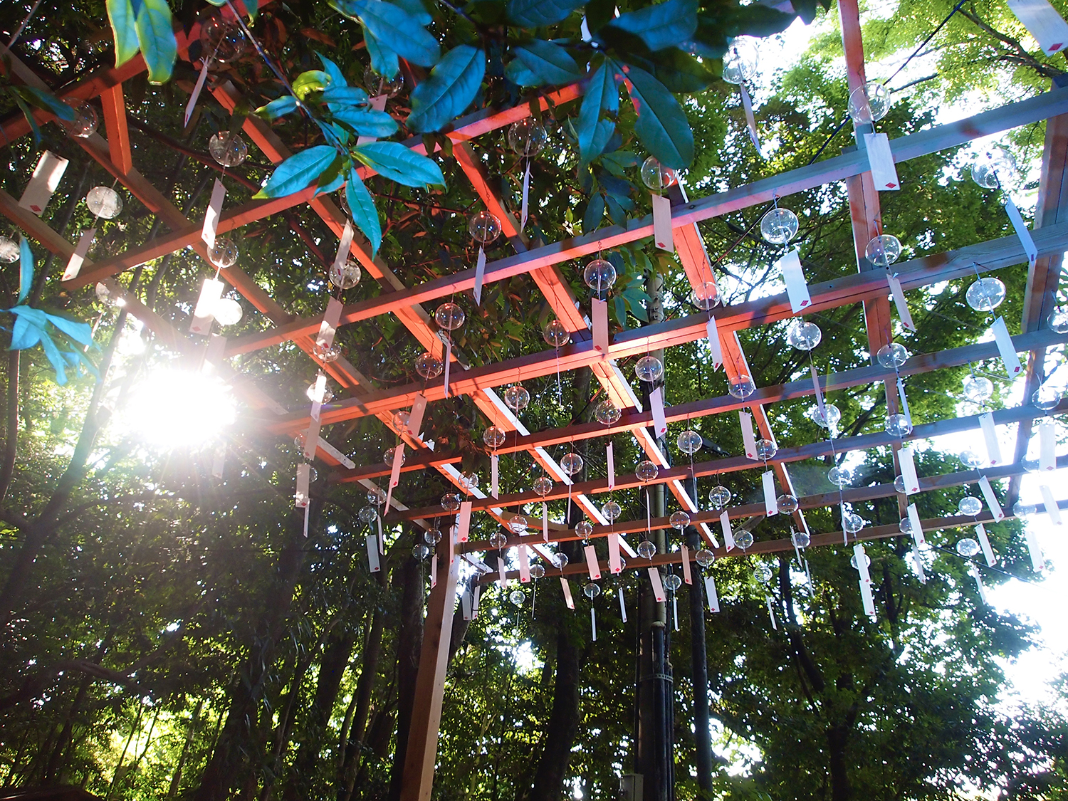 走進神社境內,首先映入眼簾的,便是那條由超過兩千個江戶風鈴組成的「緣結び風鈴回廊」。五彩斑斕的玻璃風鈴懸掛在木製棚架下,陽光穿透其間,在地面上投下斑斕跳躍的光影。每一個風鈴下方,都繫著一張被稱為「短冊」的木製詩籤。參拜者會將自己的心願,無論是祈求一段美好的緣分,還是對家人的祝福,一筆一劃地寫在上面。於是,當風吹過,搖曳的不僅是風鈴,更是成千上萬個真誠的祈願。這使得風鈴的每一次鳴響,都彷彿是心願與神明之間的低語。